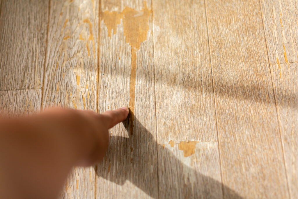 フローリングの上を歩いた際に、音が鳴ったりふかふかしたりすると、耐久性が低下している可能性があります。